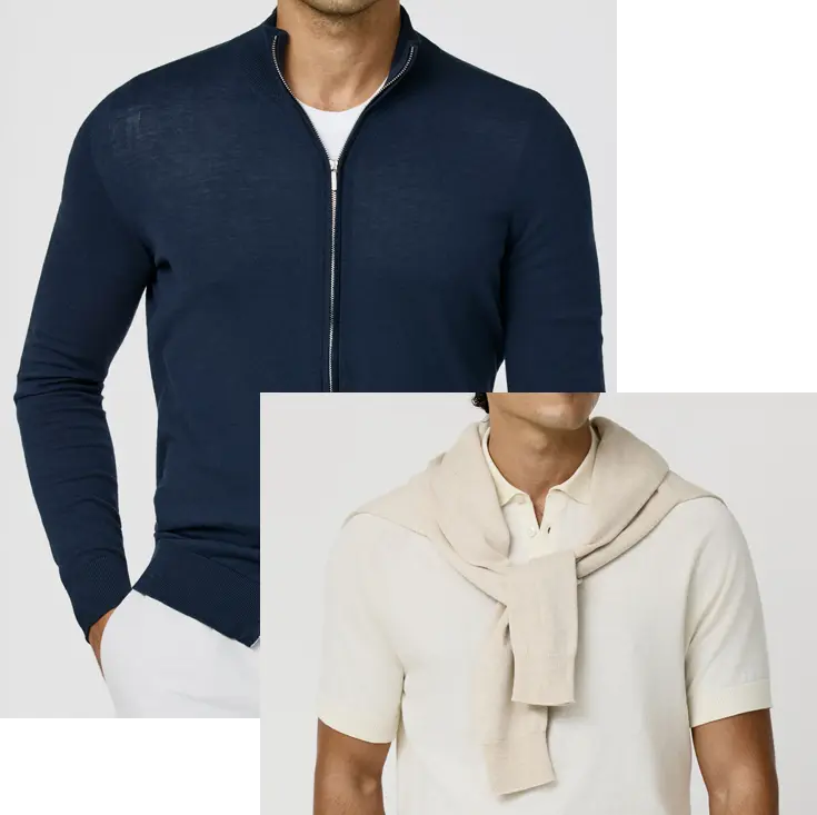 Unser Maßstrick beginnt bei 219 € und wird exklusiv von Munro und Scabal gefertigt. Zur Auswahl stehen hochwertige Materialien wie Baumwolle, Kaschmir, Seide-Kaschmir-Mix, Wolle, Schurwolle, Merinowolle, luxuriöse Super 160s Wolle sowie Loro Piana Qualitäten.